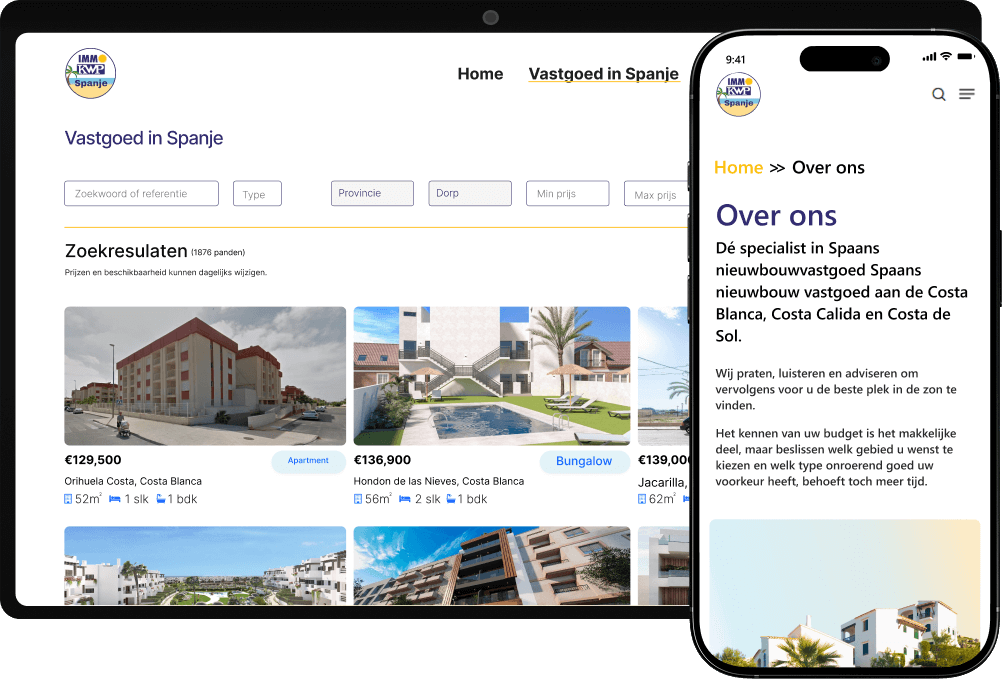 The KWP Spanje website is designed to serve the Spanish-market branch of the KWP brand (likely in real-estate, relocation or service offering in Spain).